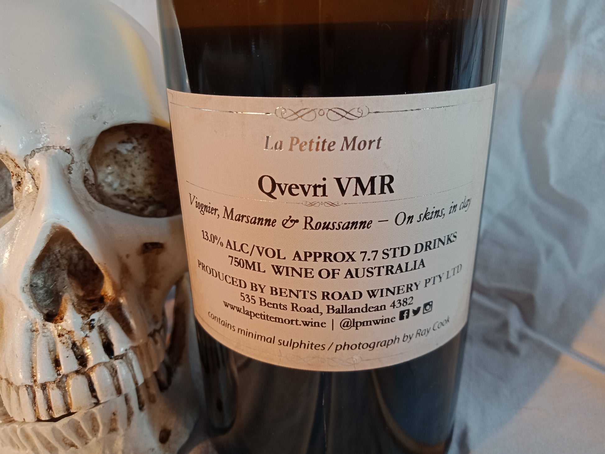 2018 La Petite Mort V.M.R. - whole berries of Viognier, Marsanne and Roussanne fermented in terra cotta amphora for 67 days - skins and all!! This "amber wine" (aka orange - but not to be confused with wine from Orange) is definitely something out of the ordinary. The Viognier gives fruit and perfume while the Marsanne lends it's waxy texture and the Roussanne gives a hint of savouriness. This wine is bottled un-fined and un-filtered so a little bit of sediment is both likely and intentional. (Kinda like a Coopers Ale!!)